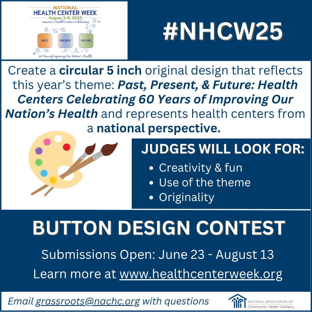 - Create an original button design (5 in. x 5 in. circular size) that represents the value of Community Health Centers from a national perspective.